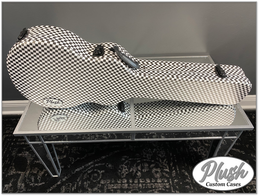 Plush-Paul LP Custom Guitar Case Black & White Checkerboard with Purple Fur