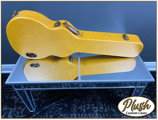 Plush-Paul LP Custom Guitar Case Brown Mustard Ostrich with Cream Fur