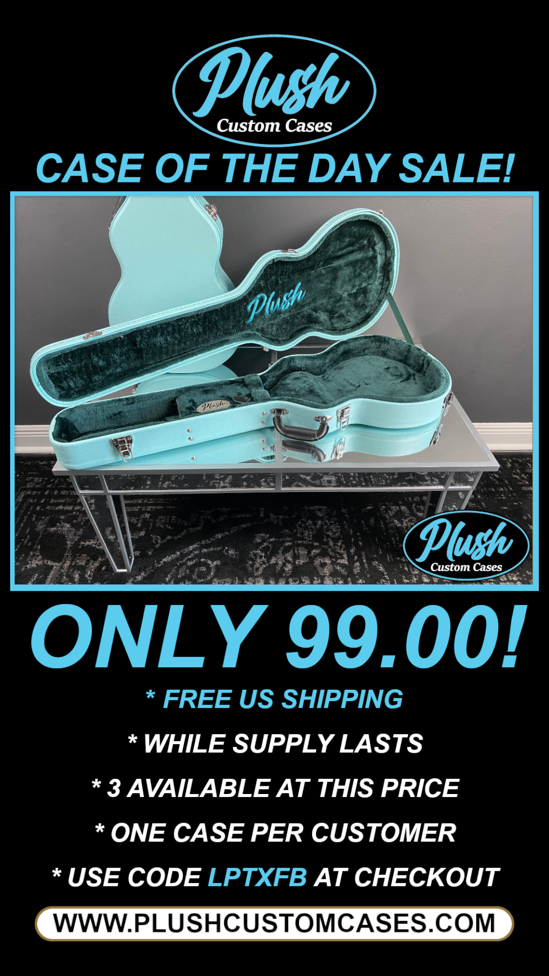 Plush-Paul LP Custom Guitar Case Daylight Blue Tolex with Green Fur